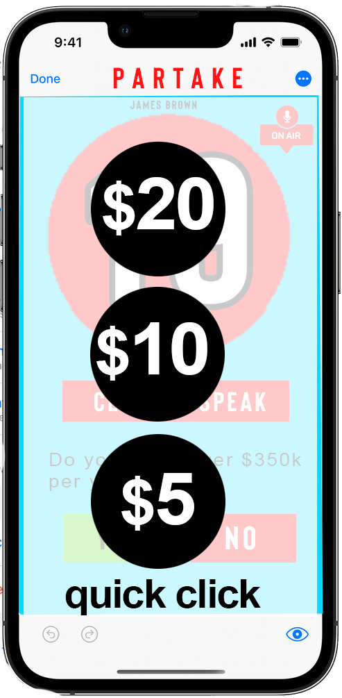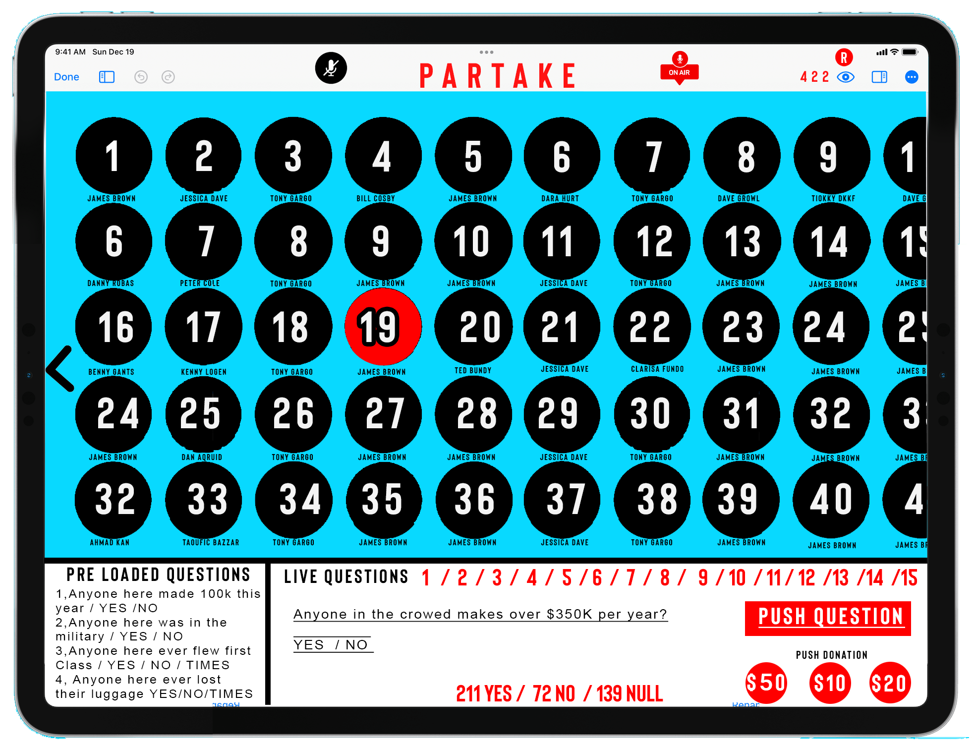 Engage your audience in real time by pushing questions and allowing anyone in the crowd to share their thoughts through the local PA system without a microphone. Enable one-click donations, sell your digital or physical products directly from the stage, and live stream the event to those who couldn't attend.
